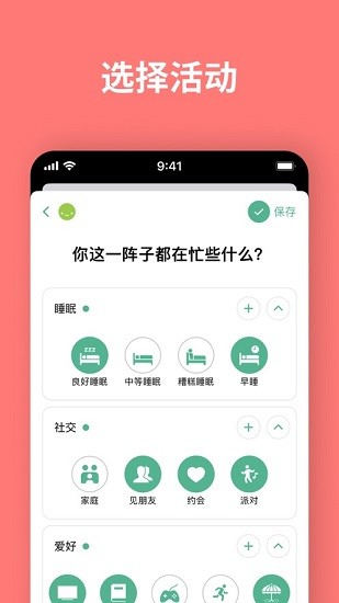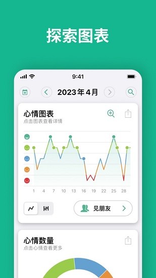 2、会把记录下来的心情和活动收集到统计数据和日历中。