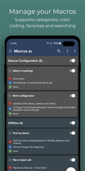MacroDroid自动化工具是一款可以让用户解放双手的辅助工具,用户可以进行操作预设完成你想要的操作效果,无需动手简单好用。支持用户自定义脚本,也能直接应用热门的自动化脚本,快来下载体验吧!