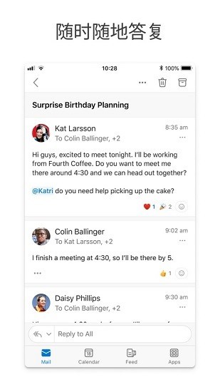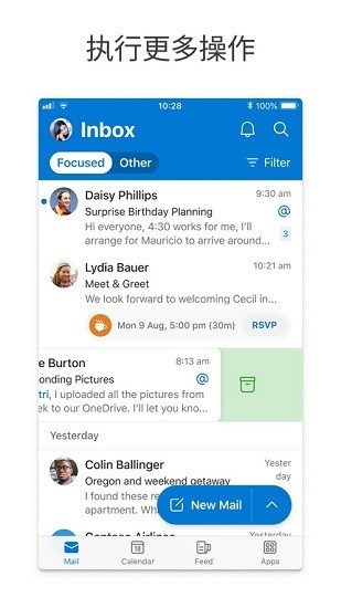 微软Outlook手机app可以让大家自由注册登录自己的邮箱,能够轻松的收发超多的邮件,想怎么使用都可以的,带来的工具能直接使用。可以自由的创建各种日程,平时发送邮件也可以添加各种附件,能够极速的发送。
