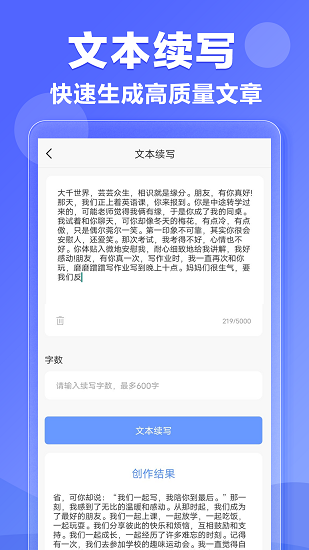 AI写作神器app这个可以让大家在这里自由创作任意的文章,使用AI生成都是非常方便的,各种类型的文章都可以极速的进行生成,你可以输入标题或者关键词来指定生成的内容,都可以快速的复制生成的结果,非常的轻松。