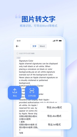 智能OCR识别文字,能精准识别图片上的文字,支持导出为 Word/Excel 格式。