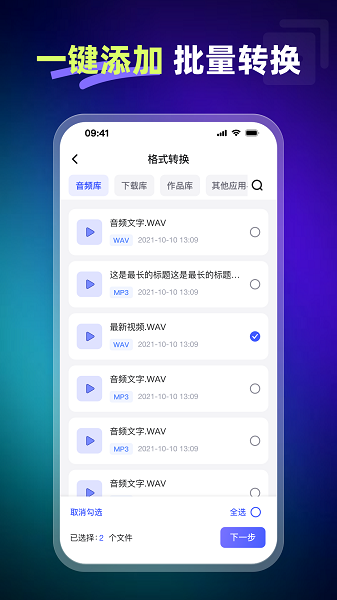 格式转换宝提供了多种音频格式间的相互转换,满足您对不同音频格式的需求,支持的格式有:mp3,flac,aac,wav.m4a等众多常用的音频格式。