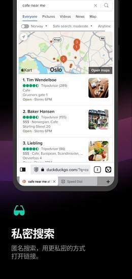 您的浏览器,您的事情。我们不会跟踪您如何使用Vivaldi,私密隐身标签意味着您能够让浏览历史只属于自己。在隐身标签中,您的搜索和访问记录、cookie和临时文件将不再保留。