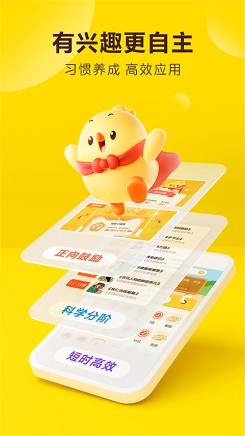 3、原创IP鸡鸦全程陪伴学习。 难度螺旋式上升,学习内容转化为有趣的游戏。