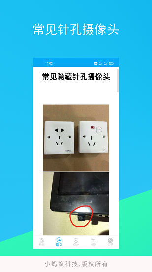 3、让大家可以查看各种防止偷拍小技巧,遇到偷拍都可以及时的报警。