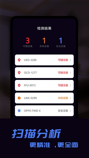 3、日常都可以精准的进行扫描分析,每次分析都可以找到隐藏摄像头。