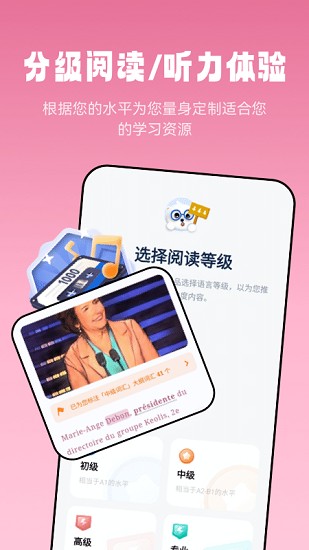 全新艾宾浩斯和人工智能练习模式,让你训练阅读听力的同时不知不觉增加法语词汇量。