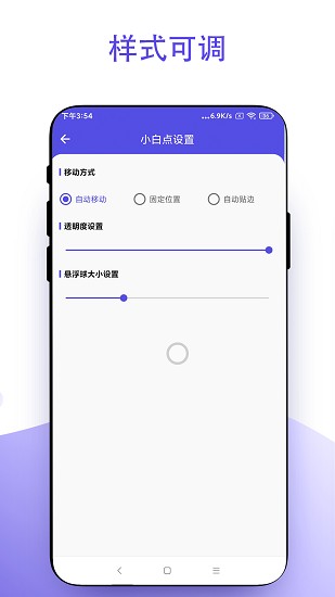 3、在手机屏幕上显示的小白点和面板都能美化的,能够自由进行调整。