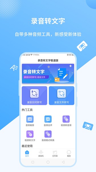 录音转文字极速版app可以让大家在这里自由开始录音,想怎么将录音转换为文字都行的,可以识别多种语言文字,都可以快速查看识别的结果了,之后导出到本地进行使用。平台上可以自由的编辑音频文件,怎么裁剪和拼接都可以的。