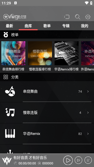 5. 海量曲库:拥有最大最全的精品DJ舞曲库,提供大量高质量的音乐资源。