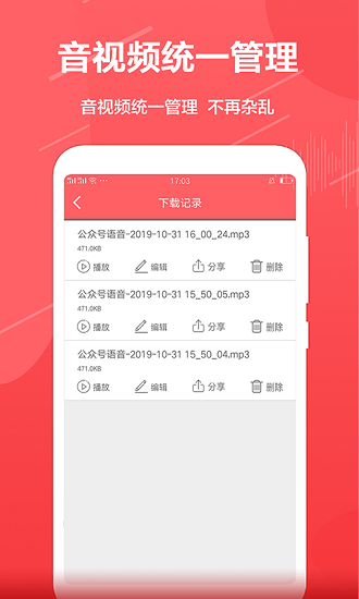 支持分享音视频,将下载好音频、好视频分享给好友!