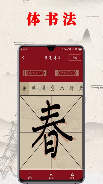 书法练字帖app专门为书法爱好者打造的练字平台,能够选择自己喜欢的书法进行训练了,想怎么在手机上进行写字或者打印字帖进行写字都行的,临摹各个书法都非常的轻松,还可以查看书写的技巧,让大家快速上手各种书法了。