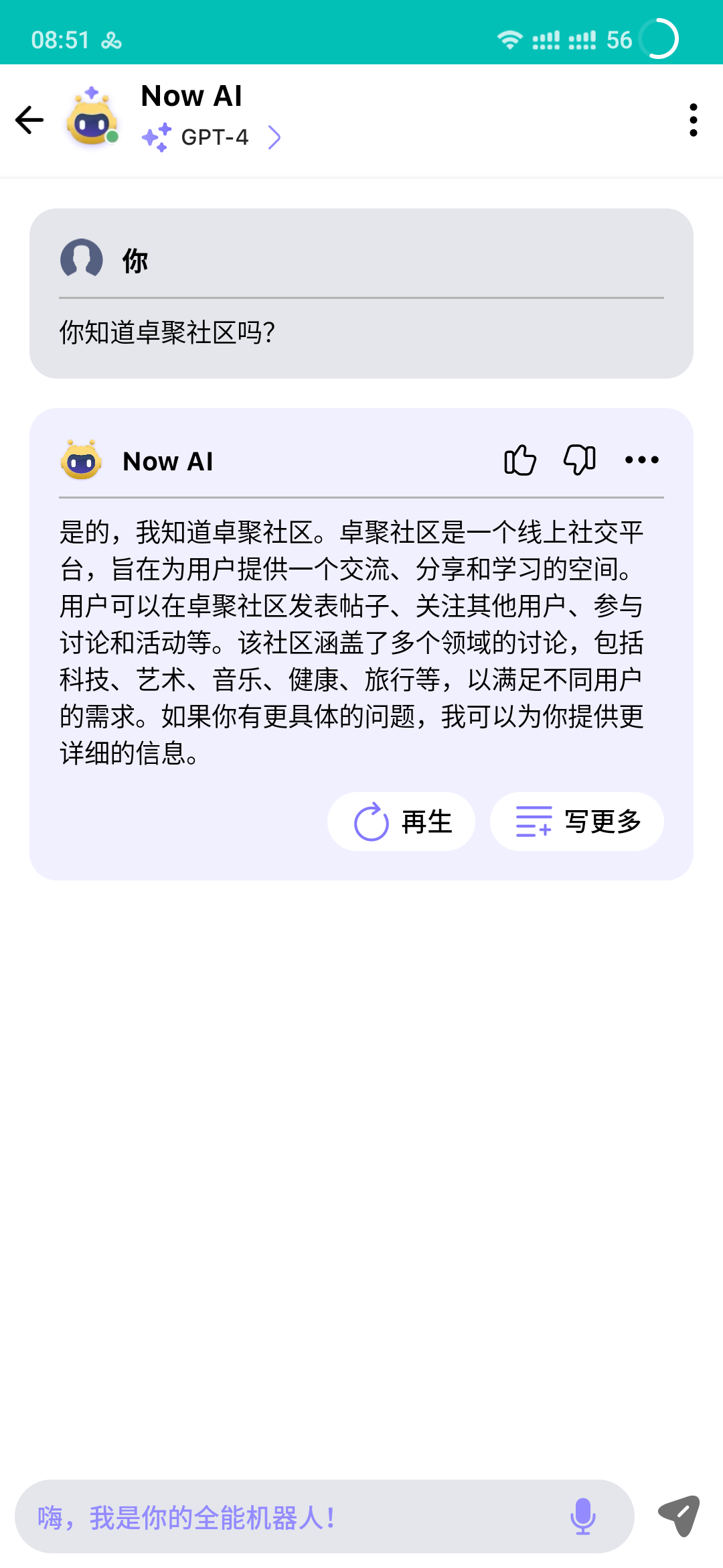1. NowAI可以模仿人类的聊天方式回复和聊天,有问必有答。