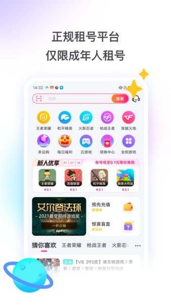 租号玩平台是一款可以出售和租凭游戏账号的软件,在互联网上,以其独特的创新理念和平台反作弊安全技术,为账户拥有者提供优质服务,充当用户与账户拥有者之间的桥梁,充分保障账户安全,同时全面融合行业 资源集中为用户提供优质服务,高品质游戏体验,每日独家优惠,您可以以低廉的价格玩许多流行的游戏帐户,如果您在游戏过程中遇到问题,可以随时咨询客服,服务超级贴心,有需要的用户赶紧下载来试试吧。