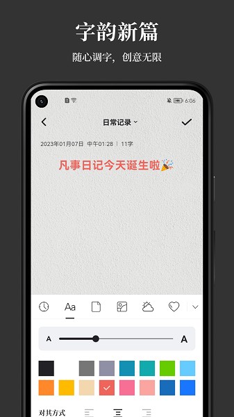 凡事日记app可以让大家随时随地记录超多的事情,无论怎么分类都是支持的,能够按照时间轴的形式查看所有的记事,点击日历中的任何日期也可以添加待办事项了,设置提醒都非常的方便,还可以在线切换日记本皮肤了。