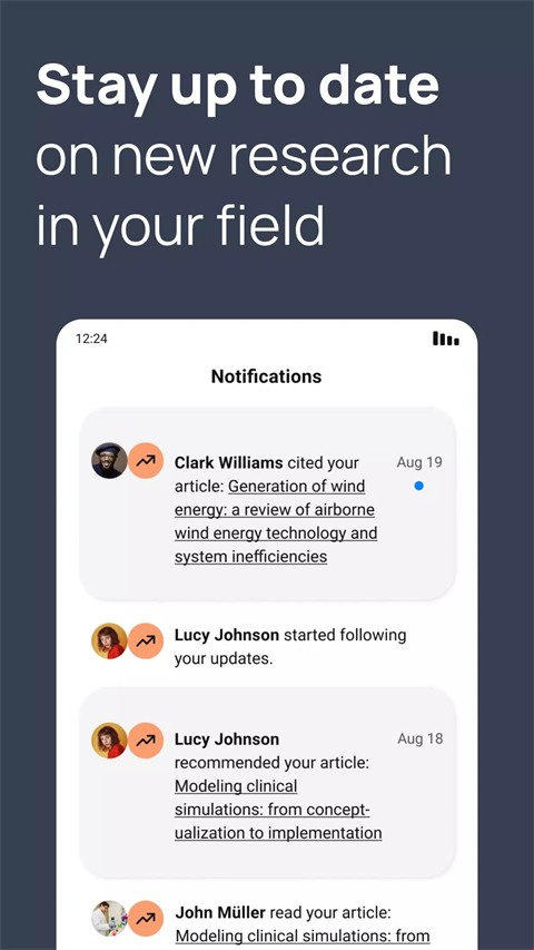 个性化您的应用程序。 设置您的提要以显示包含您选择的关键字和作者的论文摘要,您可以轻松发现对您重要的内容。