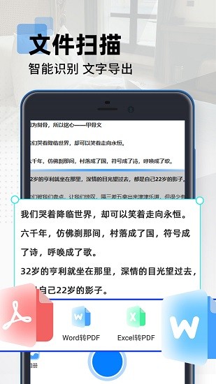 对文件进行拍照扫描后,能快速转化导出为pdf文档并发送到微信、qq等应用。
