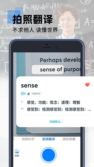 3、能够在这里进行拍照翻译,遇到不认识的单词和句子快速的翻译。