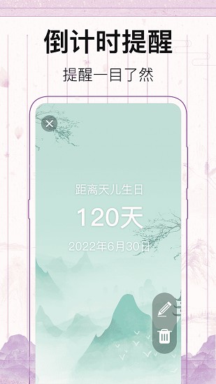 帮你记录生活中重要的日子,包括记录纪念日、朋友生日、考研高考倒数计时、重要的出游日子,让你能从容安排自己的生活,又能轻松记录下那些特别的日子。