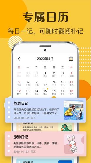 1、为大家带来了专属日历,点击各个日期都可以记事,非常的方便。