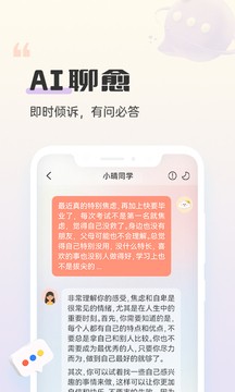 小晴同学是一款智能ai聊天软件,无论是记录心情、调节情绪,还是解决工作、学习中的问题,小晴都能为你提供实用的建议,如果你有任何焦虑或不开心的事情,无论是学习、工作、情绪、家庭、社会关系等方面,都可以和小晴倾诉,他会帮助你理清思绪,舒缓情绪,让你更加平静、轻松,小晴还可以作为您的全能助手,为您提供工作或学习的解决方案,有需要的用户赶紧下载来体验下吧。