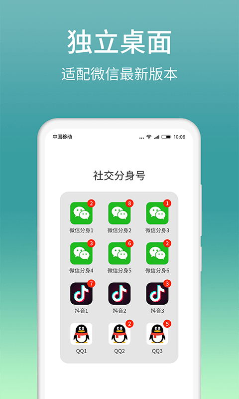 微信克隆支持双开、克隆或多开应用,自由编辑图标、名称、添加到桌面等,随心定制。