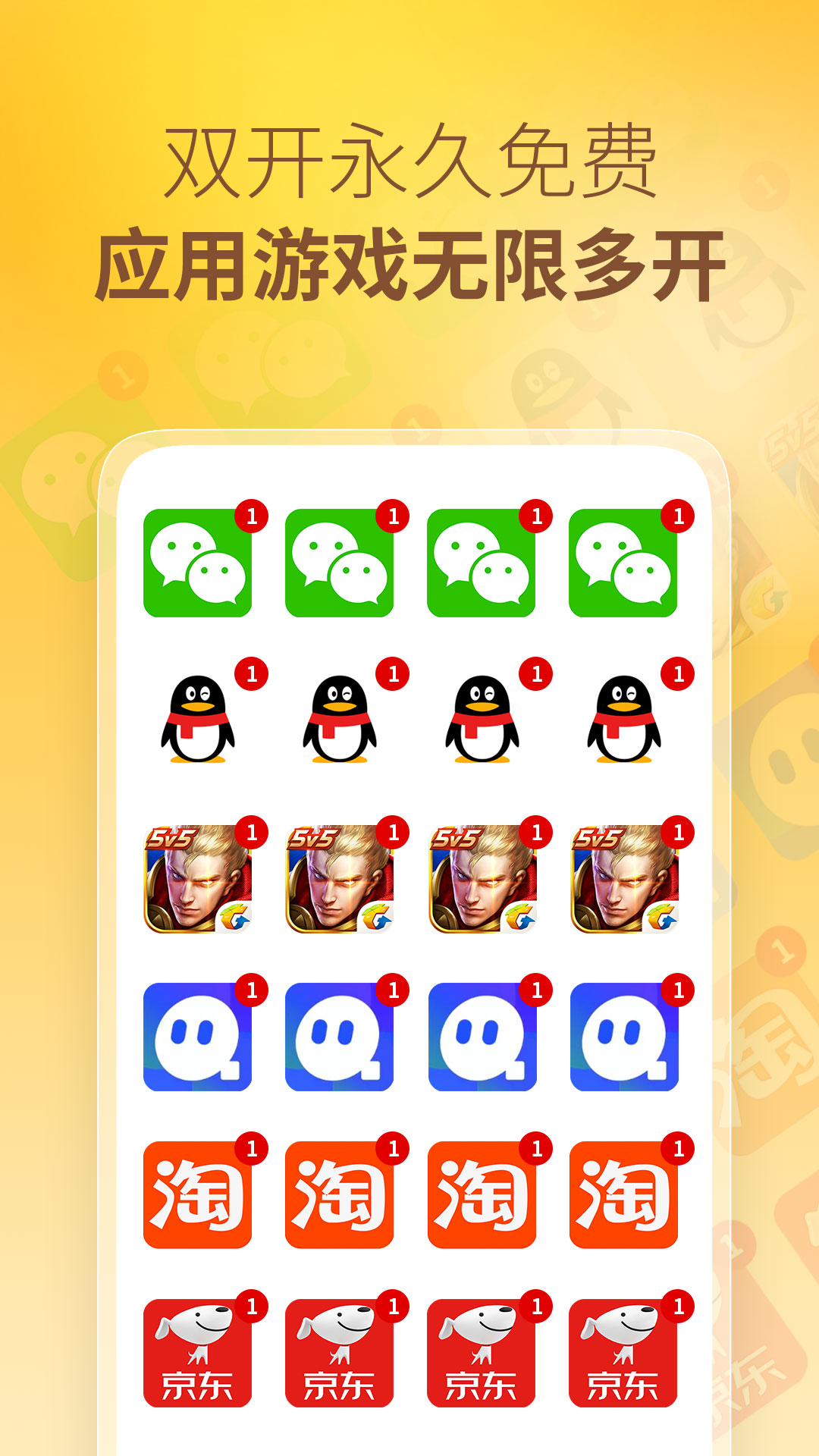自主研发的应用多开克隆功能,更稳定的微信多开克隆宝和克隆助手,满足商务人士、游戏玩家、微商人士等人群开多个微信克隆的需求。 完美支持微信多克隆、QQ多克隆、游戏克隆等所有应用无限开启多克隆。