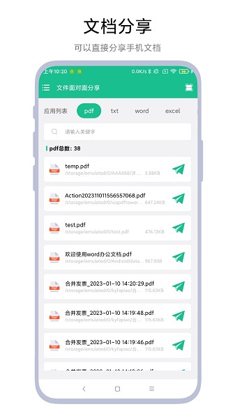 提供文档分享功能,可以将手机上的文档一键分享给对方。