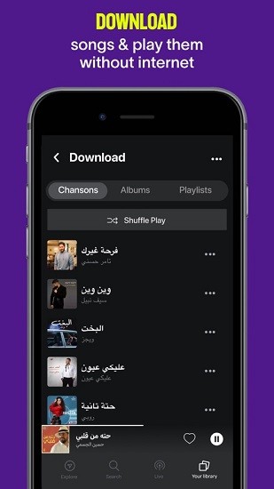 Anghami最新版为大家带来了全球超多的音乐资源,在这里可以输入各种语言进行搜索,让大家轻松找到想听的音乐,还可以通过分类来进行筛选了,近期热门的音乐榜单可以及时的进行查看,选择各种音乐播放都很方便。