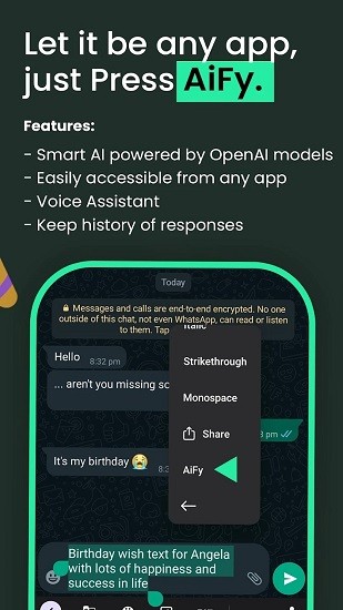 在任意位置选择文本,然后点击“AiFy”以生成对查询的智能响应。