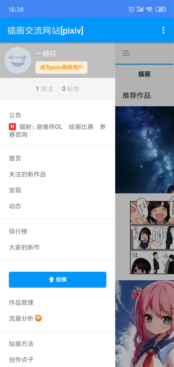 主页的右上方拥有搜索栏,可以在那里搜索自己想找的图片或画师
