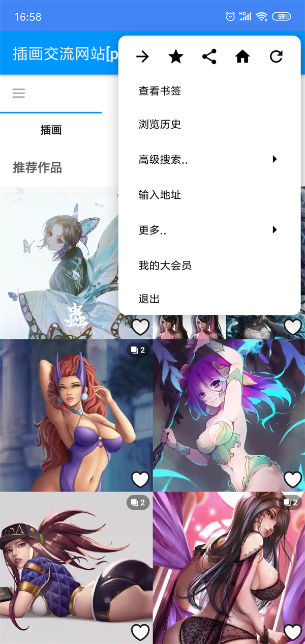 1.提供18个板块的开通帮助,以及丰富的插画作品。