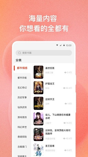 1、线上拥有非常多样的小说资源,每天想怎么查找各类小说都是支持的。