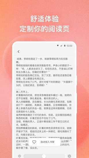 简单舒适的界面,个性化调节阅读背景、字体大小、行间距、屏幕亮度、阅读模式等设置,打造舒适阅读体验!