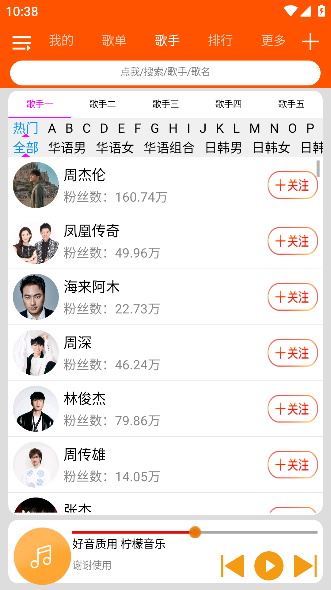 2、大家可以通过歌手来查看所有唱过的歌,都可以直接点播。