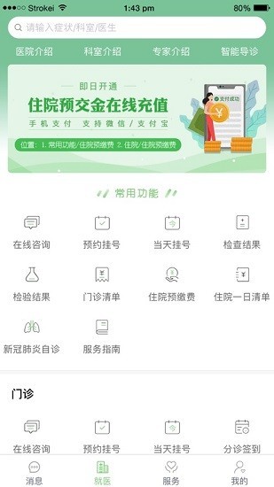 2、带来的各种服务分类都是非常详细的,在手机上就可以办住院以及缴费。