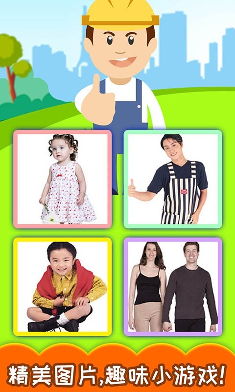 宝宝学称呼识人物是一款儿童教育软件,在这里你可以快速教会宝宝各种职业,同时你可以通过不同的游戏方式挑战自己,更好地教会宝宝认识家庭成员,朗朗上口的童谣,真实的图文结合在这里,精彩的介绍让宝宝和家人互动,标准儿童发音朗读,除了学名字,中英文卡片结合朗读、童谣,乐趣多多,还了解交通、蔬菜和水果等等,有需要的用户赶紧下载来试试吧。
