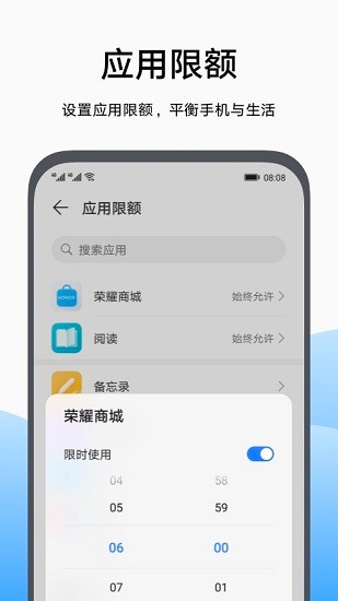 荣耀家长助手app可以让家长轻松绑定孩子的手机,可以控制孩子使用手机的时间,想怎么进行玩耍都是支持的。平台上可以设置每个应用使用的时间,快速的开启青少年的模式,设置各种密码锁,让孩子做到劳逸结合。