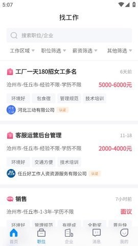 任丘好工作是一个为求职者提供线上求职招聘的平台。在这里,您可以找到各种优质的工作机会,还可以自定义工作岗位,系统会根据您的数据推送相关的职位。