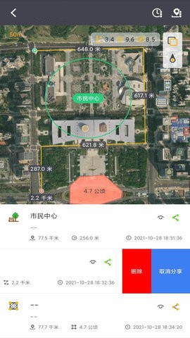 2. 轻松完成标记、测距、测面积、轨迹记录等操作,数据本地保存。