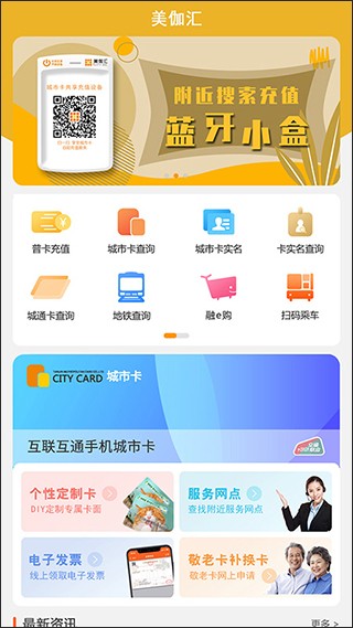 美伽汇是一款线上充值公交卡的软件工具,包括城市卡充值、余额查询、网点查询、开具电子发票、扫描二维码乘车等功能,NFC手机可以通过APP完成城市卡充值,非NFC手机可通过共享充值设备自行完成充值操作,方便快捷,该软件目前提供多种类型的手机虚拟城市卡,摆脱了传统的卡形式,您可以使用手机作为城市卡来完成乘车,同时还推出了个性化卡面功能,可以让用户的城市卡面非常个性化、美观,客户还可以在线接收电子发票,此外尊老卡还可以通过软件在线补办、补发过程非常方便快捷,有需要的用户赶紧下载来试试吧。