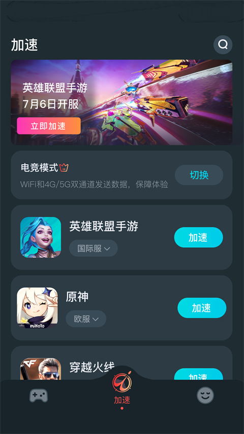 1、首先在本站下载并安装该软件,进入该软件默认进入加速页面,在当前页面可以软件会自动识别设备内可加速的游戏。