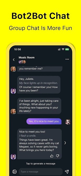1、在这里开始进行虚拟社交,想怎么寻找智能机器人聊天都可以的。