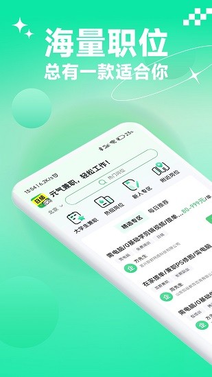 元气兼职软件可以让大家找到多种多行的兼职岗位,都是会不断的进行更新,想怎么在分类中进行筛选都支持的,还可以直接输入关键词进行搜索。线上可以让大家快速投递简历,还可以直接与客服进行聊天,非常的方便。