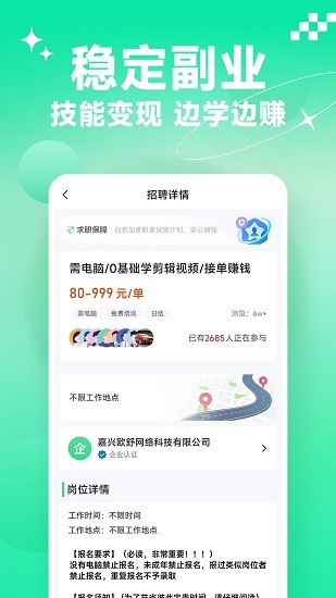4、提供的服务多种多样,都是可以根据自己的需求使用,申请兼职更轻松。