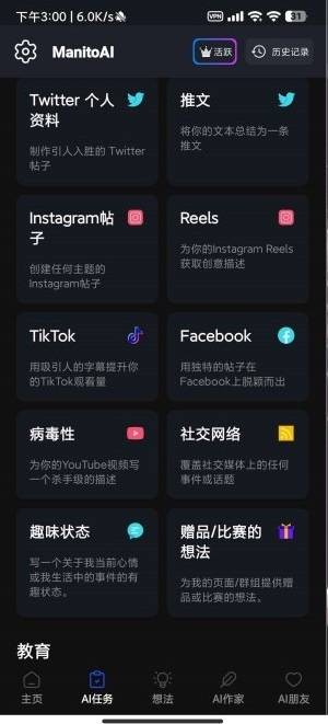 ManitoAI是一款全能的手机ai智能写作工具,让你可以一键智能生成想要的文案内容,不论是想要写作文,短视频脚本,推文,职场公文,短篇小说等等文案内容都能提出自己的要求等等ai为你自动生成。