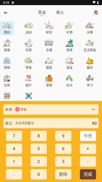 优橙app是一款专业的手机记账软件,为用户带来了详细的账单分类,包含了十多种不同的账单类型,让你可以详细的查看自己的每一笔消费,点击对应的分类就能查看所有的类别消费非常好用。