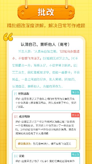 5、批改:从标点到用词,从结构到立意,每一篇文章都可以360度无死角评价,是提高你写作水平的最佳帮手。