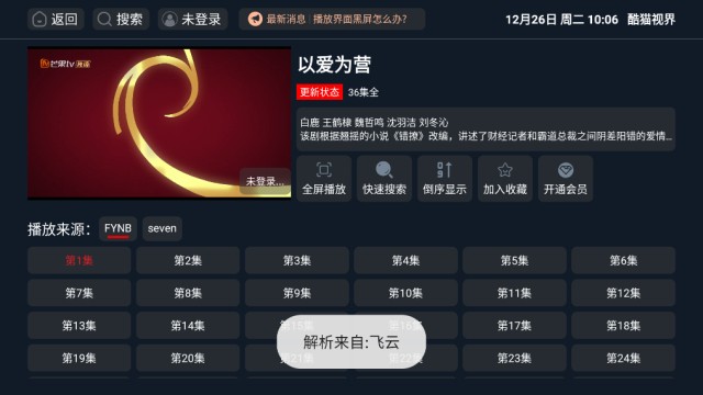 酷猫视界app可以让大家每天在电视上免费看超多的影视剧,拥有多个站点的影视剧资源,可以输入片名进行聚合搜索,找到的剧默认都是高清的画质,不用担心播放源失效,可以及时切换不同播放源,操作都非常的便捷。