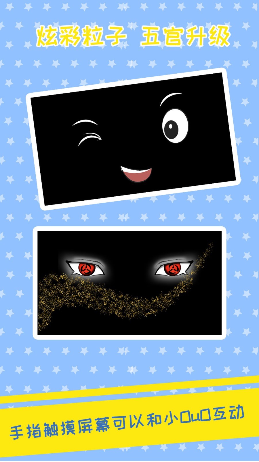ouo表情模拟器是一款手机表情互动软件,它采用黑白界面风格,没有多余的场景,也没有复杂的操作,用户进入软件后可以看到一个非常可爱的表情,如果你此刻心情不好或者无聊,可以尝试一下,你可能会变得非常幸福,该软件由两双大眼睛和一个俏皮的鼻子组成,他们一开始就会有一个默认的位置,当玩家用手触摸眼睛或鼻子时,它们的形状就会发生变化,从而变成许多不同的形状,每个表情看起来都特别可爱,还支持截图保存到手机永久保存,另外ouo表情模拟器支持戳、挤、摇操作,当玩家触摸不同的部位时,他们会看到不同的情绪,有需要的用户赶紧下载来体验吧。